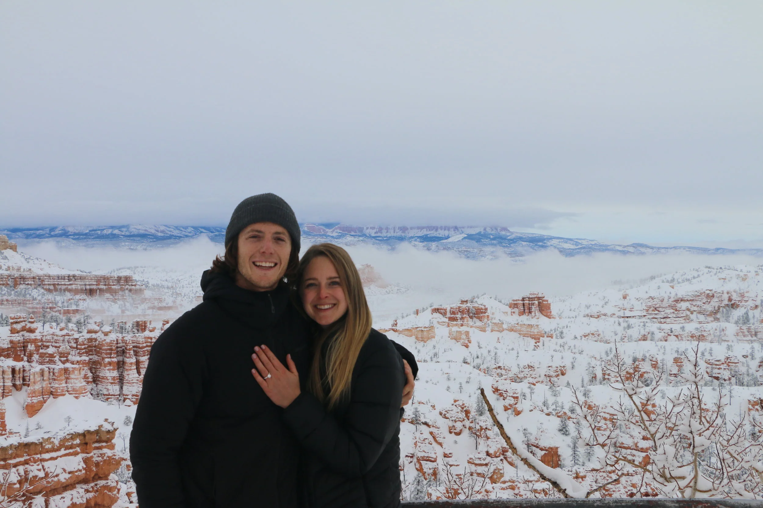 With shared loves of friends, family, snowboarding, traveling, biking and exploring the outdoors, we’ve been lucky enough to share amazing adventures, and we’re just getting started. Though we are definitely very different people (to say the least), we’ve prioritized our friendship, supported each other’s aspirations, and dreamt of our future together since we were teenagers. After moving in together in Newport Beach, it wasn’t long before the time was right for us to take the next step. We got engaged on a winter camping trip in southern Utah. We adopted Juno in December 2019, developed an unhealthy obsession with him, and have adventured with him across the US.
